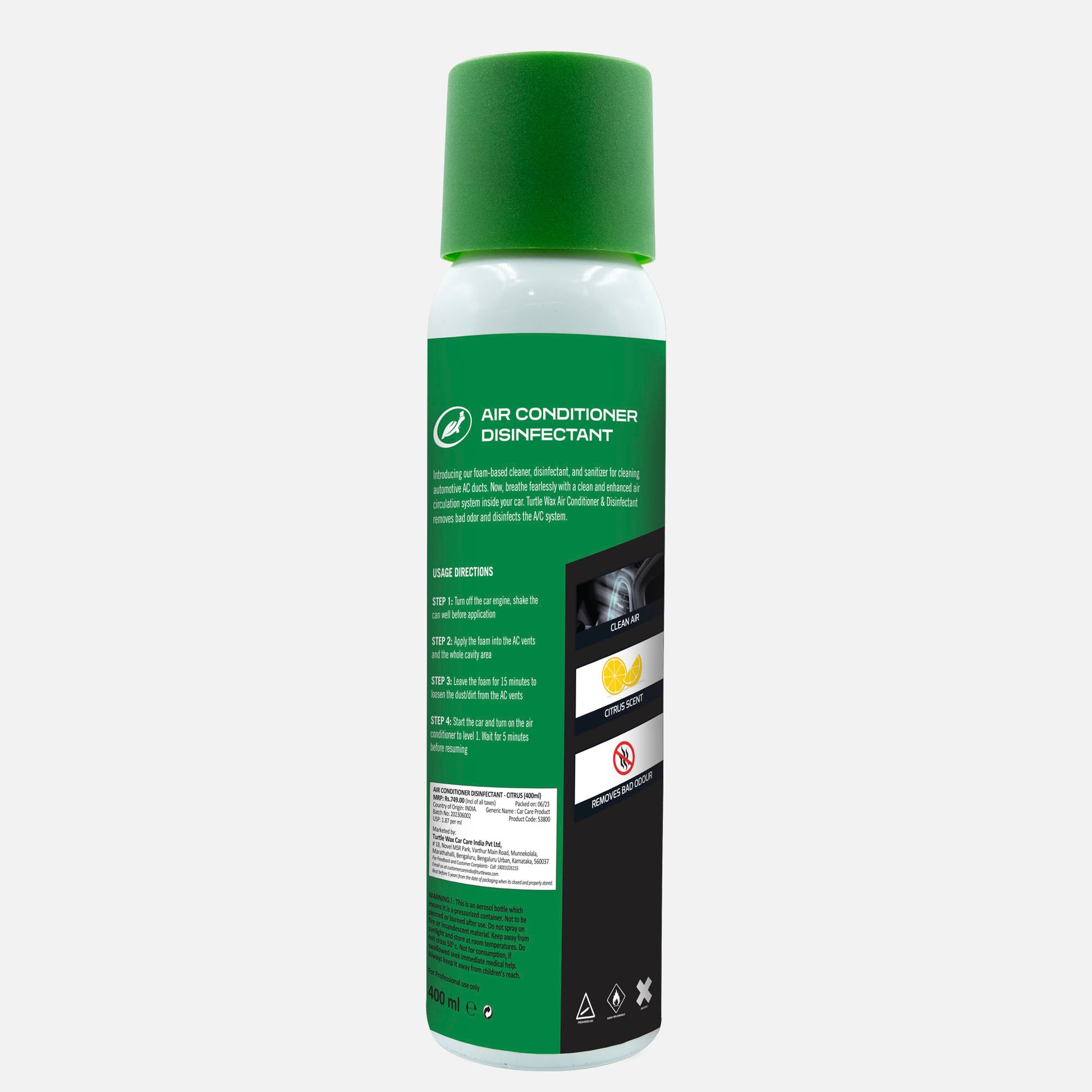Introducing our foam-based cleaner, disinfectant, and Sanitizer for cleaning automotive AC ducts. Now, breathe fearlessly with a clean and enhanced air circulation system inside your car. Turtle Wax Air Conditioner & Disinfectant removes bad odor and disinfects the A/C system.